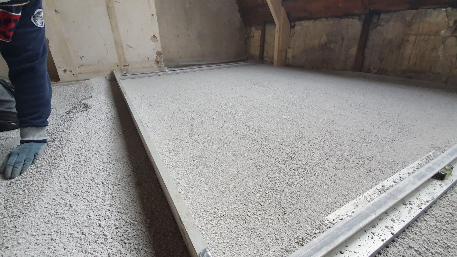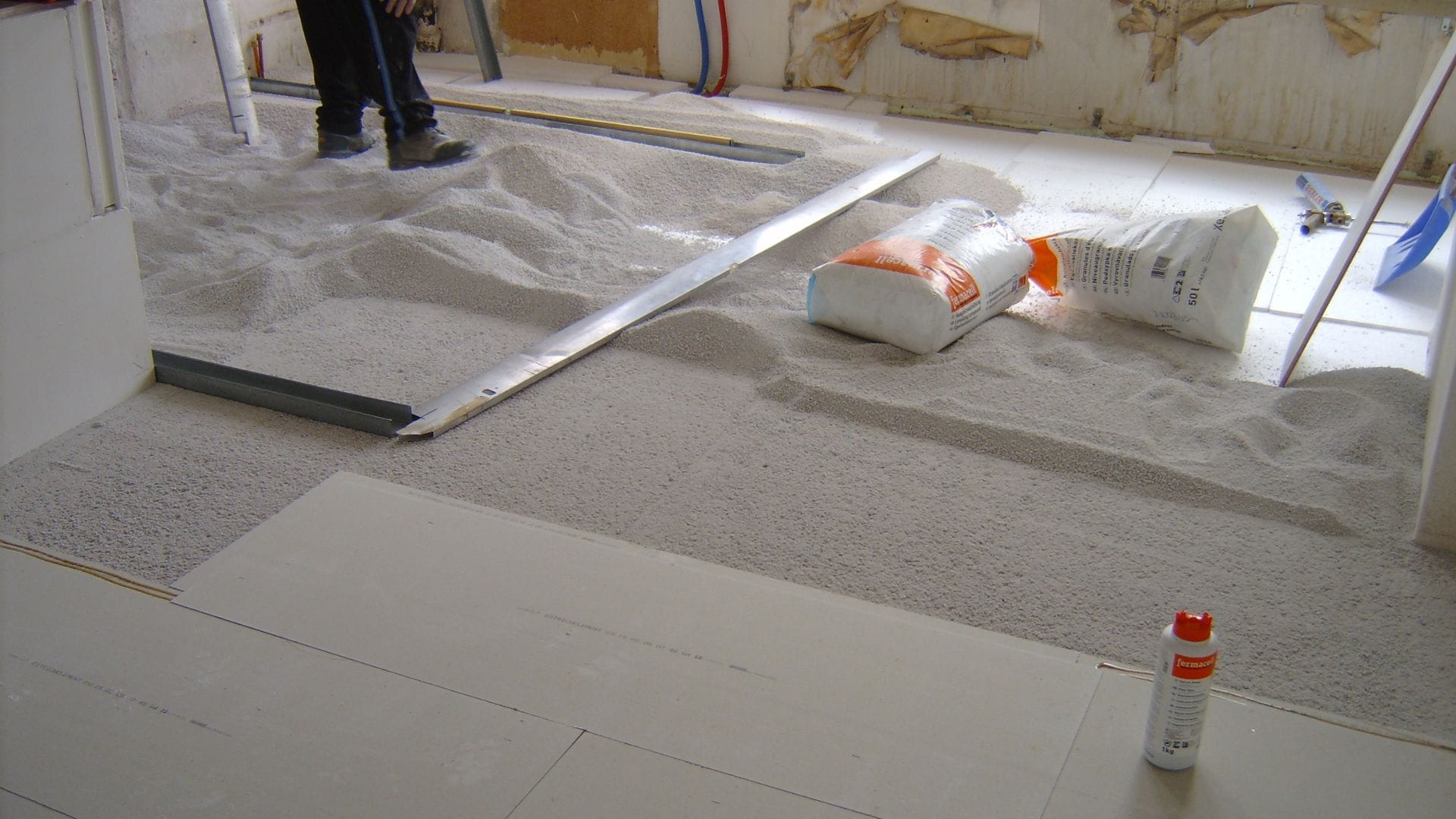 Fermacell heeft ook iets bedacht indien je ondergrond niet helemaal vlak is. Zeker wanneer je werkt met vloerelementen met een zachte ondergrond (zoals de Fermacell 2e32) dan kan de plaat 1-2mm wel corrigeren. Mochten de oneffenheden groter zijn dan kun je de vloer het beste egaliseren. Droge egalisatiekorrels van Fermacell doen een beetje denken aan kattenbakkorrels. Je strooit ze, na het leggen van de Fermacell beschermingsfolie, over het gehele oppervlak en maakt het geheel egaal. Van belang is dat de minimale korrelhoogte 1cm is, en de maximale korrelhoogte 6cm. Nadat de korrels egaal gelegd zijn kan direct begonnen worden met het leggen van de Fermacell platen.